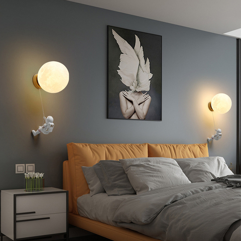 Minimalista creativo astronauta palla applique da parete casa camera da letto comodino moderna lampada da parete a LED per interni luna