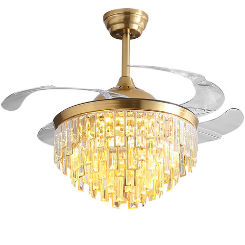 Современная дизайнерская декоративная Выдвижная люстра, медный потолочный светильник с кристаллами в винтажном стиле для спальни, светодиодные потолочные вентиляторы с дистанционным управлением