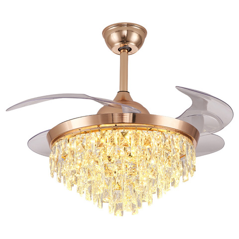 Современный домашний декор 42 дюйма 52 дюйма с регулируемой яркостью пульт дистанционного управления акриловый Золотой роскошный Кристальный светодиодный большой потолочный вентилятор