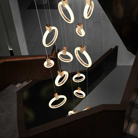 Золотые Большие длинные светодиодные люстры на заказ для отеля, подвесные светильники для лестницы, потолочные светильники, роскошные современные хрустальные люстры