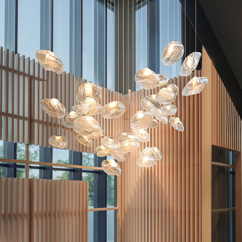 Индивидуальные декоративные большие современные лестничные люстры для отеля, роскошные подвесные светильники, светодиодные стеклянные хрустальные люстры