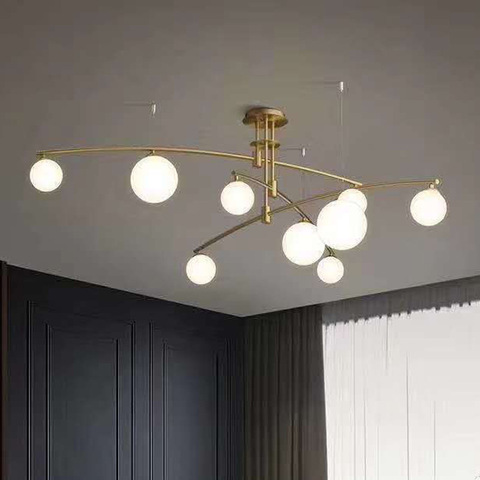 屋内高級レストランリビングルーム北欧鉄ゴールドガラスled sputnik vシャンデリア