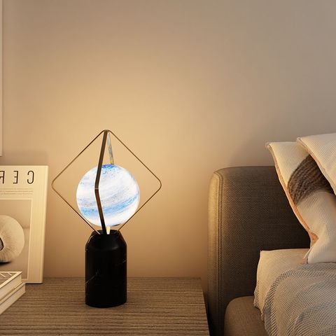 Lámpara de escritorio sencilla y moderna para dormitorio, mesita de noche de lujo con bola de Luna, base de mármol led
