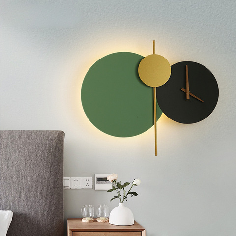 Applique murale nordique Rechargeable pour salon, chambre à coucher, chevet, intérieur, rond, hôtel de luxe, applique murale moderne, horloge Led